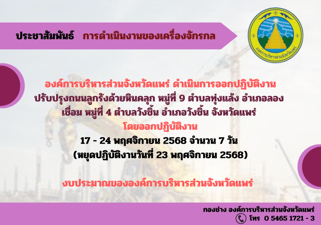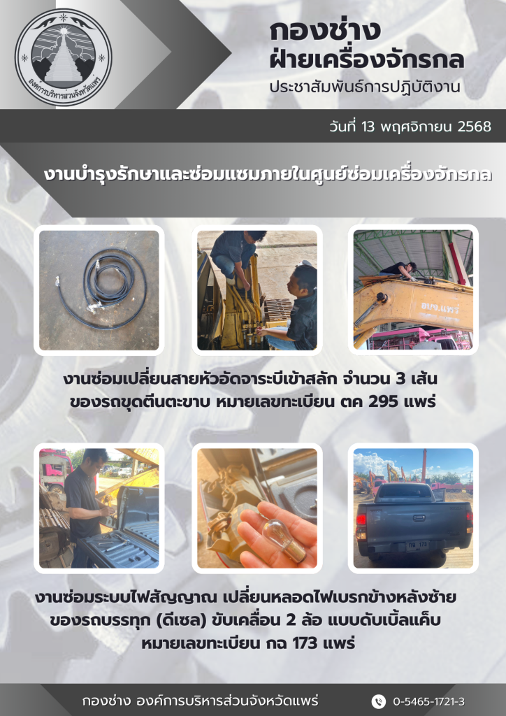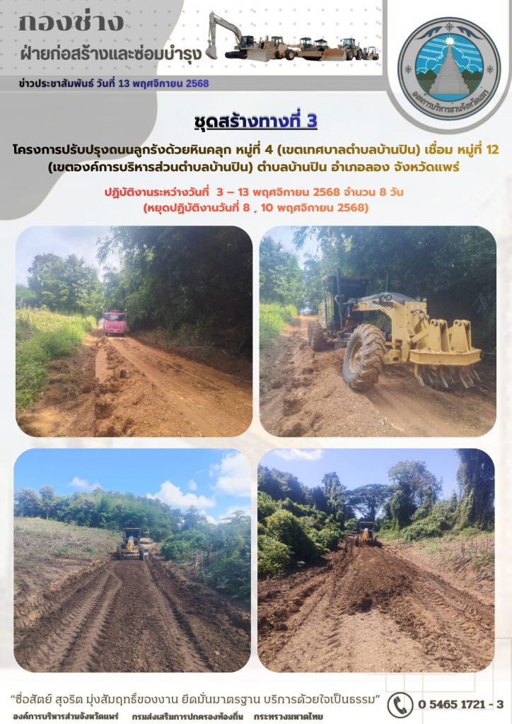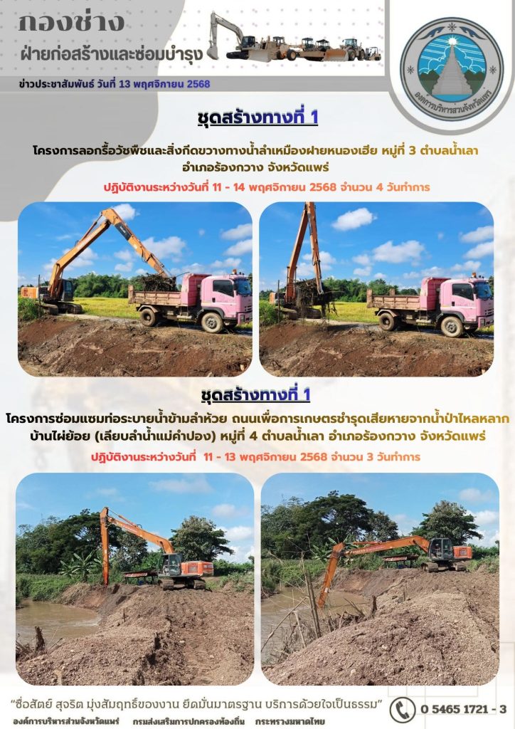 🛠รายงานประจำวันของแต่ละฝ่ายในกองช่าง อบจ.แพร่🛠