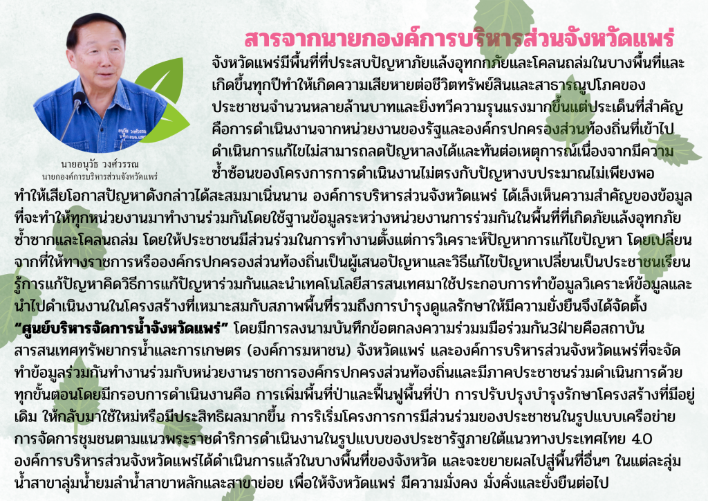 ถิ่นดี วิถีสุข ศูนย์บริหารจัดการน้ำจังหวัดแพร่เข้าใจ เข้าถึง พัฒนา เพื่อประชาชน